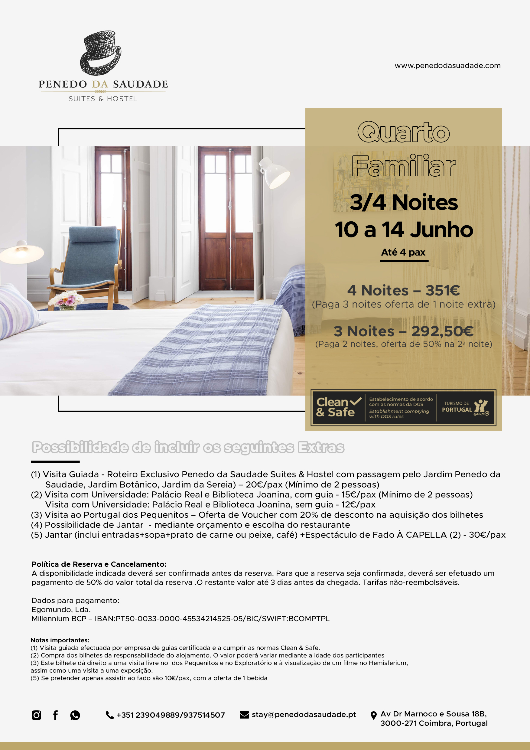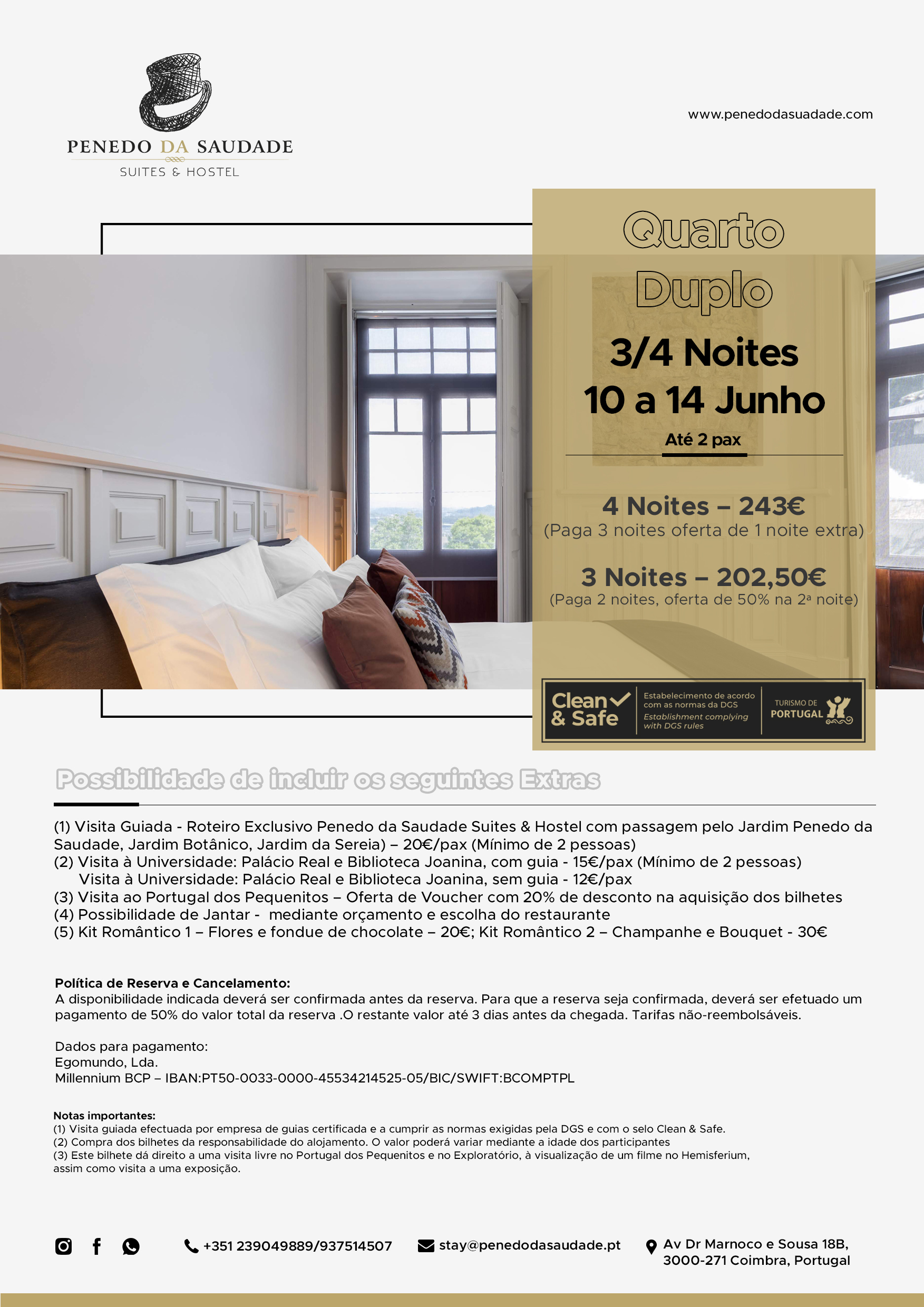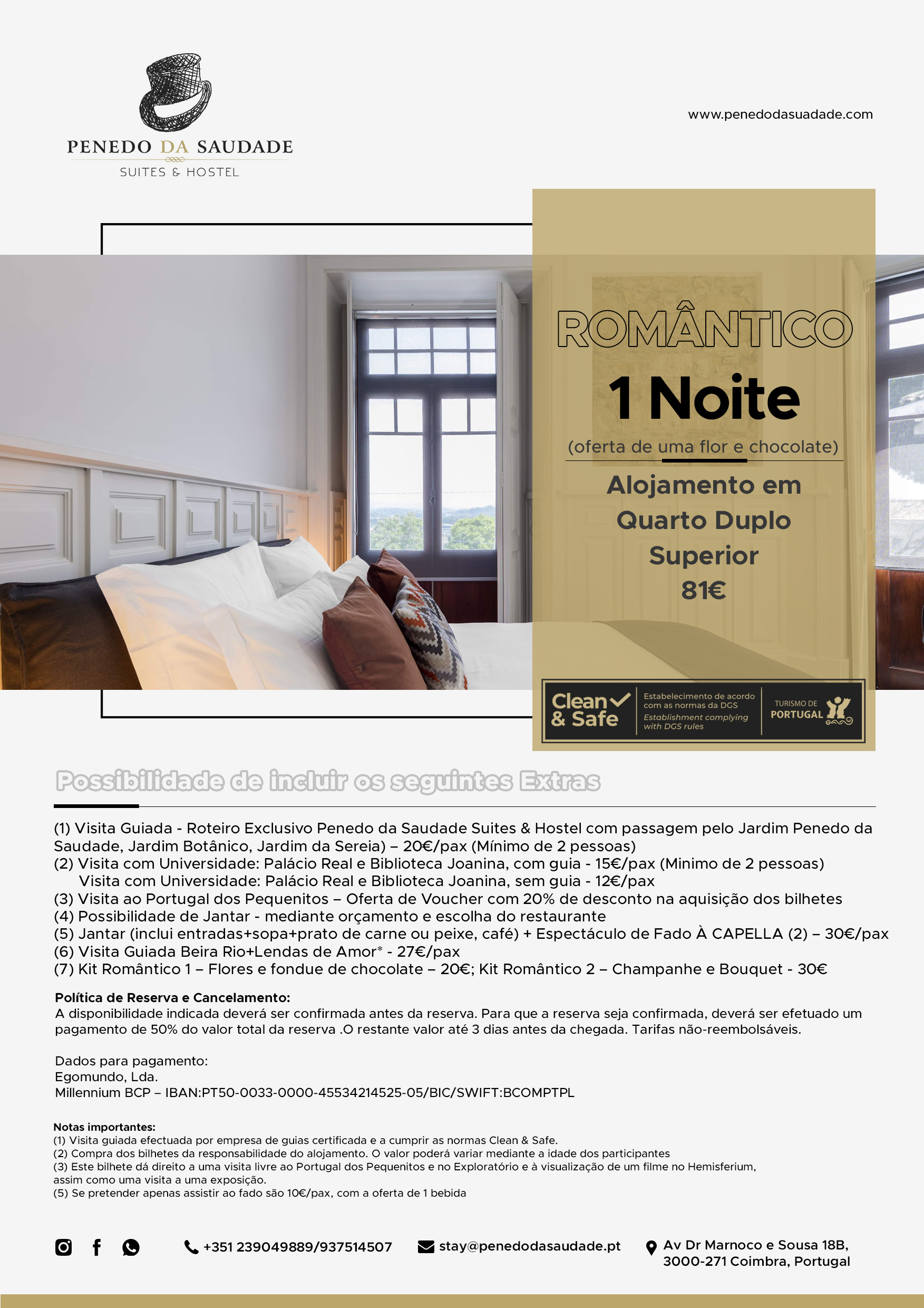 Localizado na zona nobre do Jardim do Penedo da Saudade e em área protegida do Património da UNESCO , este Alojamento, com o mesmo nome, é muito mais do que um espaço de dormida. Respeitando as características da construção existente, o edifício do início do séc. XX, outrora uma República de Coimbra, foi adaptado para proporcionar quartos e espaços comuns banhados de luz natural e decorados com cuidado e pormenor. Inspirado na vivência académica e tradições coimbrãs, os hóspedes são acolhidos numa casa que é de todos e que será o ponto de partida para experienciar os Amores de Coimbra.